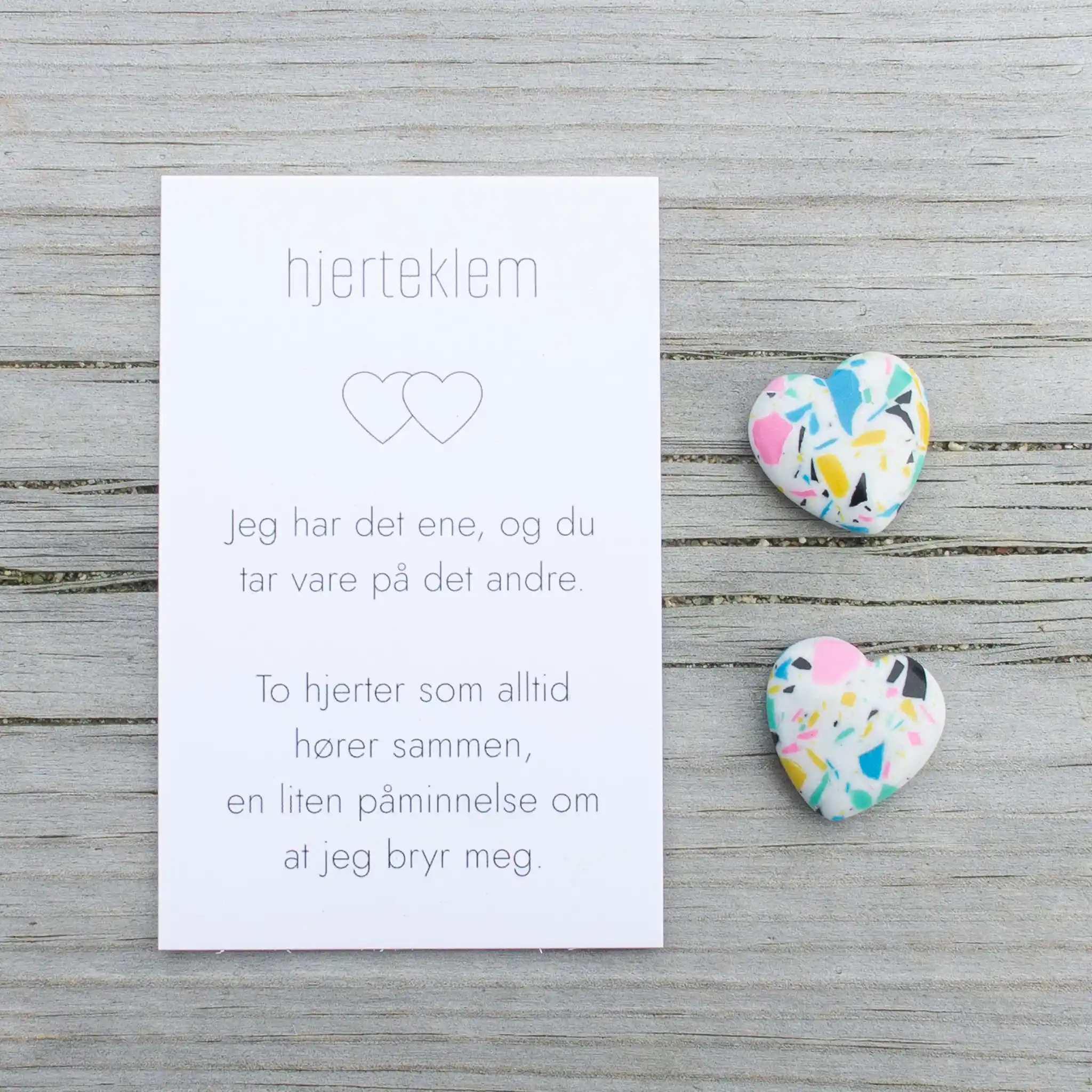 Når du kjøper to Hjerteklemmer, er tanken at du beholder én selv og gir den andre til noen du er glad i.